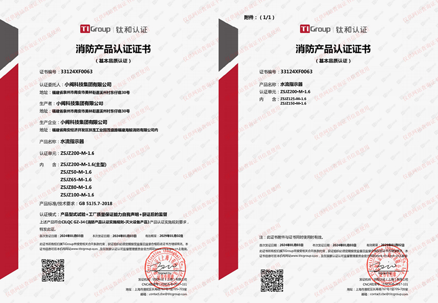 水流指示器消防产品认证证书