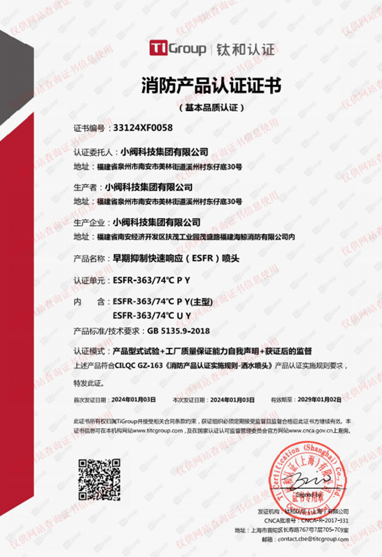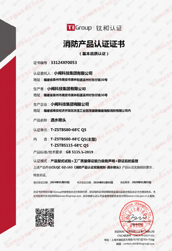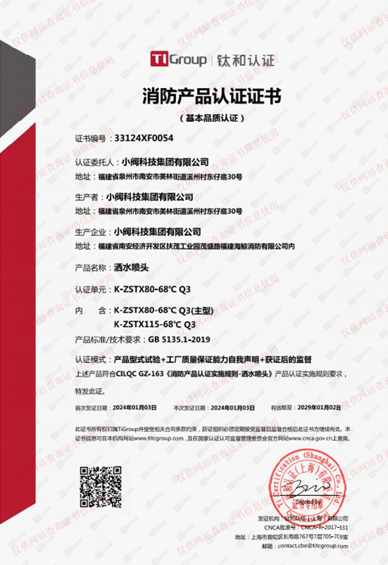 洒水喷头消防产品认证证书