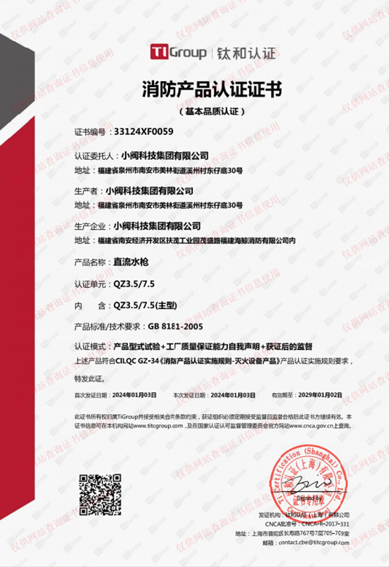 直流水枪消防产品认证证书