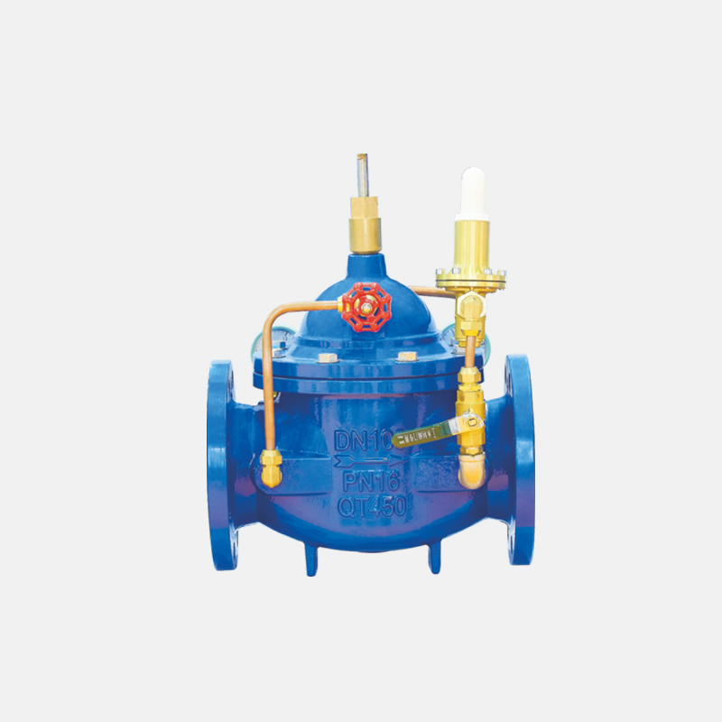 400X流量控制阀主阀安装在配水管路需控制流量和压力的管路中,保持预定流量不变,将过大流量限制在一个预定值,将上游高压减为下游低压。即使主阀上游的压力发生变化,也不会影响主阀下游的流量。
