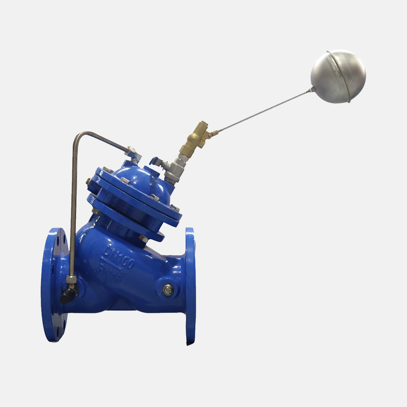 F745X隔膜式遥控浮球阀是兼具多种功能的水力操作式阀门。主要安装于水池或高架水塔的进水口处,当水位达到设定的高度时,主阀由浮球导阀控制关闭进水口停止供水;当水位下降后,主阀由浮球导阀控制打开进水口向水池注水,实现自动补水。液位控制精确,不受水压干扰;隔膜式遥控浮球阀可随水池的高度及使用空间任意位置安装,维护、调试、检查方便、密封可靠,使用寿命长。隔膜式阀门性能可靠、强度高、动作平稳,适用于DN450mm口径以下的管道。